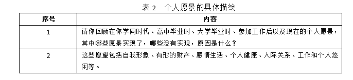 表2 個人愿景的具體描繪